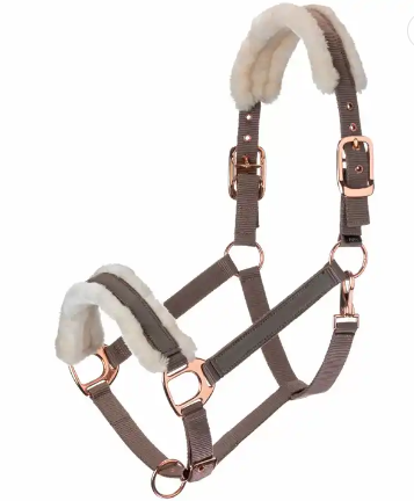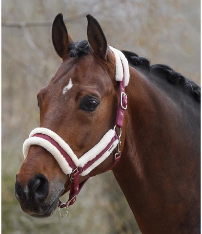 Dit Luxe halster heeft een bonte invulling en geeft extra comfort bij het paard.